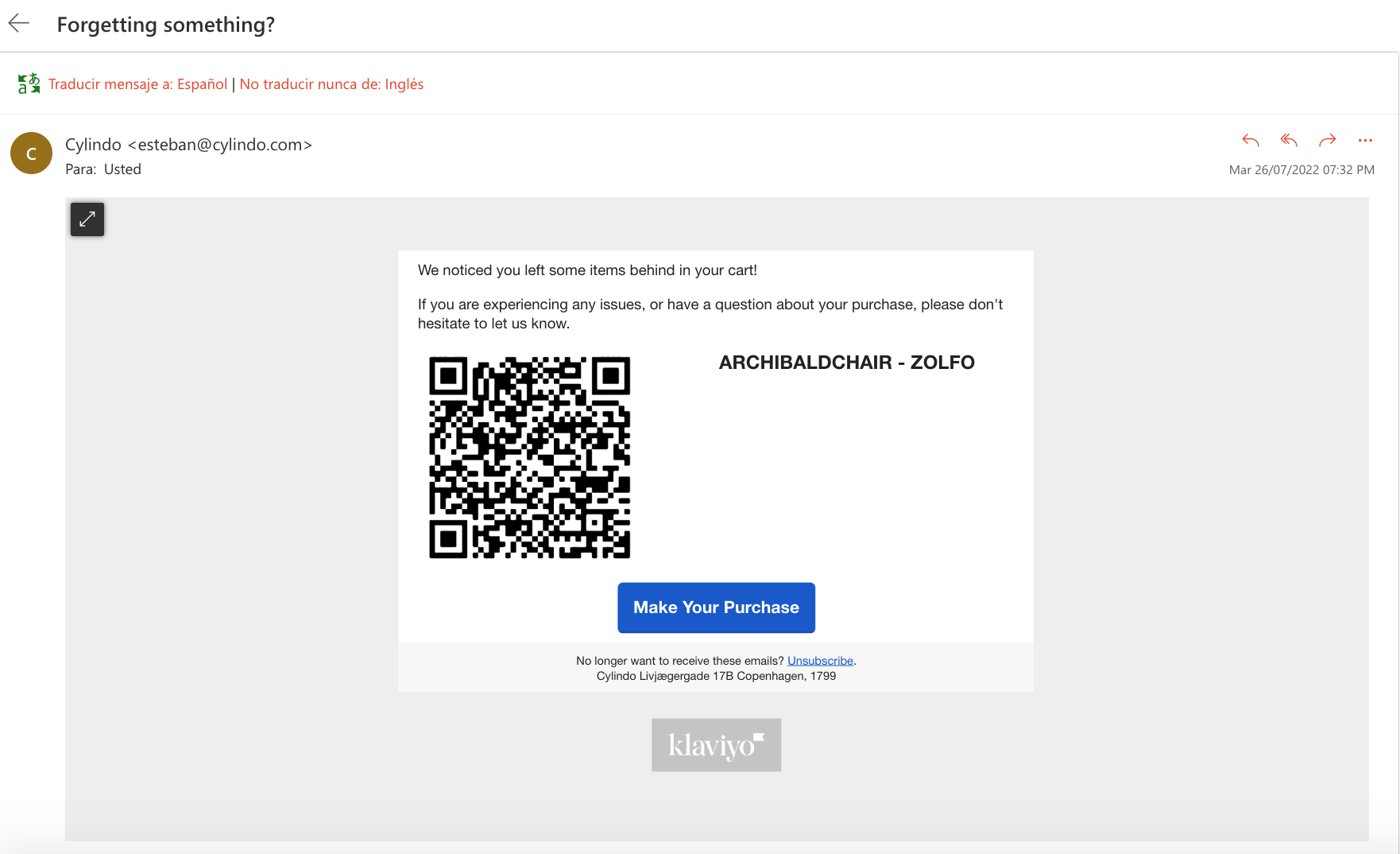 Another important thing that can be achieved with Klaviyo is that we can decide which content is displayed when the follow up email is open on a specific device, so now we can show our QR code image for Desktop devices and the 360 frame image on mobile devices.